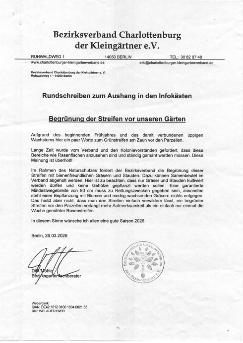Veränderte Sprechzeiten beim Bezirksverband der Kleingärtner.eV.